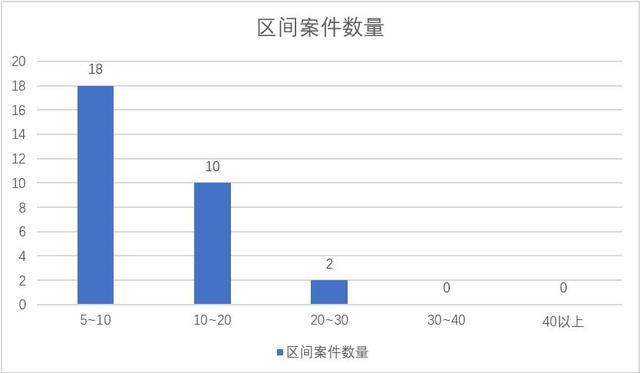 上图表是南京市的案件分布情况。从图表可知,案件数量最高的是江宁区,共有36起,其中起诉的3起,不起诉的10起;其次是案件数量都12起的玄武区(5,7)和雨花台区(4,8);随后的是:栖霞区7起(1,6);鼓楼区6起(6,0);江宁经开区5起(1,4);溧水区4起(2,2);秦淮区2起(1,1);六合区1起(1,0);高淳区1起(1,0);而建邺区没有搜集到相关案件。